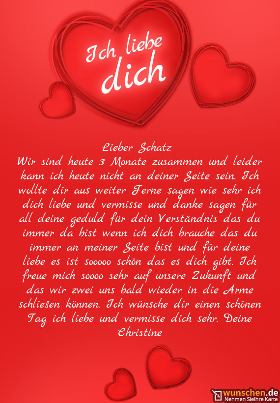 N Tag ich liebe und vermisse dich sehr. Deine Christine